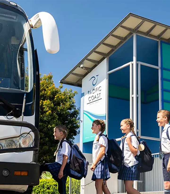 The Pacific Coast Bus service is available for students who live in Queensland, Murwillumbah, Kingscliff and Pottsville. Students must be traveling from home to school and/or school to home.